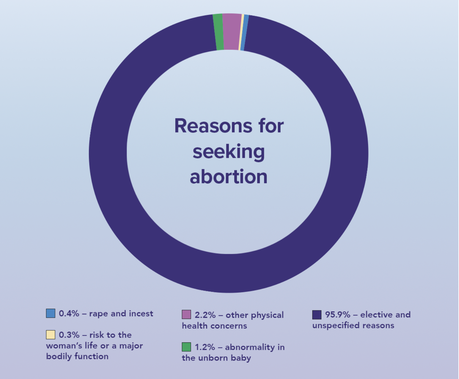 After the Supreme Court ruling in Dobbs v. Jackson Women’s Health Organization, states across the country have enacted laws that limit abortion. Frequently, these state laws make exceptions for abortions for certain reasons, such as rape and incest, risk to the mother’s life or health, or a fetal abnormality. Assessing the number of abortions performed for various reasons can be challenging due to the poor quality of U.S. abortion data resulting from inconsistent reporting requirements. Periodic surveys by pro-abortion organizations have been done of women visiting abortion centers.[1], [2] However, these surveys do not provide a detailed look at abortions specifically performed for common legal exceptions.